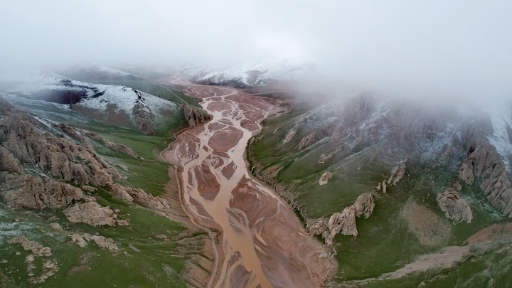 這是7月26日拍攝的通天河支流的辮狀河道(無人機照片)。新華社記者 劉詩平 攝