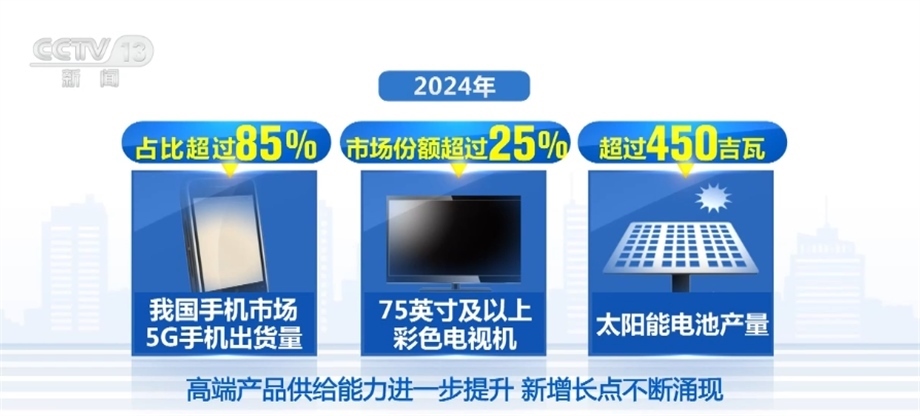 方案中明確提出,2023年—2024年,計算機、通信和其他電子設(shè)備制造業(yè)增加值平均增速5%左右,電子信息制造業(yè)規(guī)模以上企業(yè)營業(yè)收入突破24萬億元。2024年,我國手機市場5G手機出貨量占比超過85%,75英寸及以上彩色電視機市場份額超過25%,太陽能電池產(chǎn)量超過450吉瓦,高端產(chǎn)品供給能力進一步提升,新增長點不斷涌現(xiàn)。