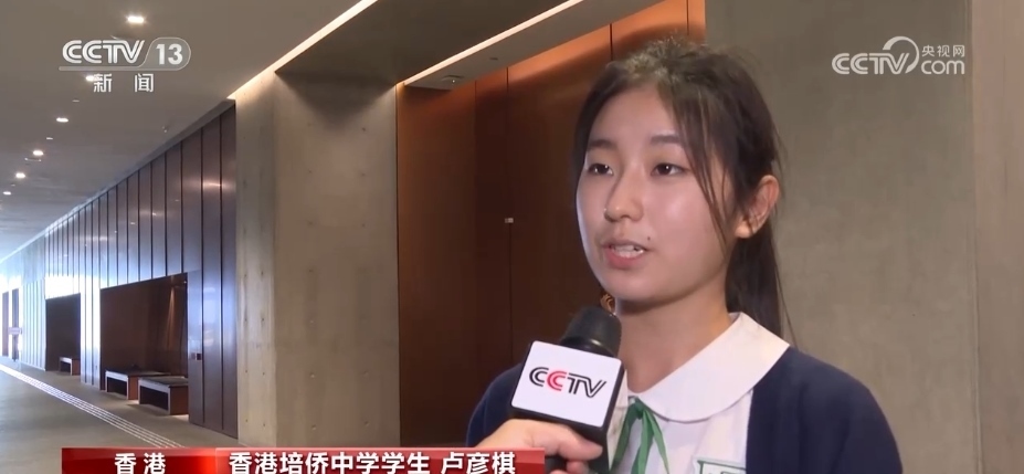 香港培僑中學(xué)學(xué)生 楊海茵:我們的國家現(xiàn)在非常繁榮昌盛,我們也身處在一個非常和平的環(huán)境中,為我們的國家感到非常自豪。(我們要)做一個對香港、對社會、對國家有貢獻(xiàn)的人。