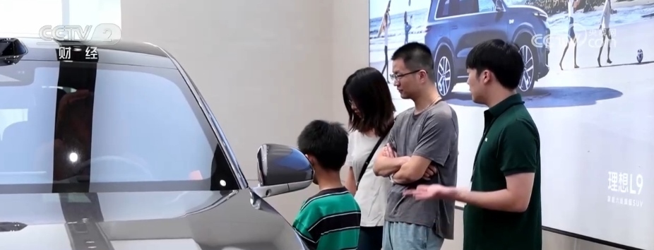 在這家新能源車銷售門店消費者絡繹不絕,很多家庭都是全員出動來選購新車。