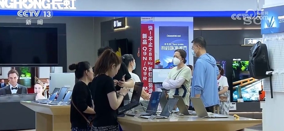 假期里,山東青島各大家電賣場客流量明顯增加。在琳瑯滿目的展示商品旁,可抵用消費券、限時折扣等標識都被懸掛在顯眼的位置。