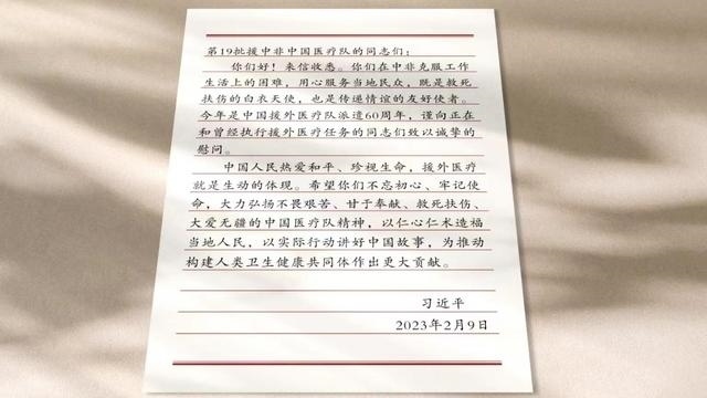時隔10年,2023年2月,習(xí)近平主席在給第19批援中非共和國中國醫(yī)療隊(duì)隊(duì)員回信時,再次提到中國醫(yī)療隊(duì)精神。