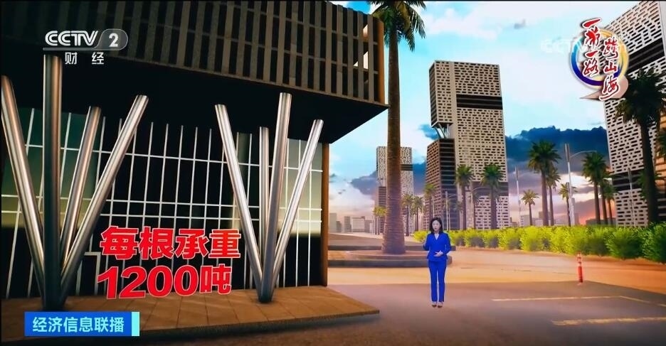 包括標(biāo)志塔在內(nèi),中國企業(yè)在中央商務(wù)區(qū)共承接了20個高層建筑單體及配套市政工程。20棟高樓間,我們還能看見不少這樣的“樹形柱”,四根向上斜伸的柱子,像一個倒立的金字塔。我身邊就是這種樹形柱,每根柱子承受1200噸重量,相當(dāng)于在上面站立150頭成年大象,受力卻只集中于底部一點,中國團(tuán)隊歷經(jīng)3個多月的精密計算與人工調(diào)試,讓這個專屬于埃及的設(shè)計成功澆筑,用堅實的技術(shù)托起了這座未來之城。