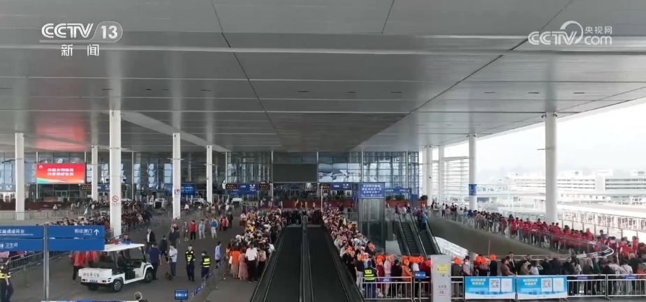 每天早上8時(shí)是口岸大廳人流最多的時(shí)候,往來珠海、澳門、香港三地的旅行團(tuán)都匯聚在這里拍照“打卡”,然后再各自出發(fā)前往目的地。