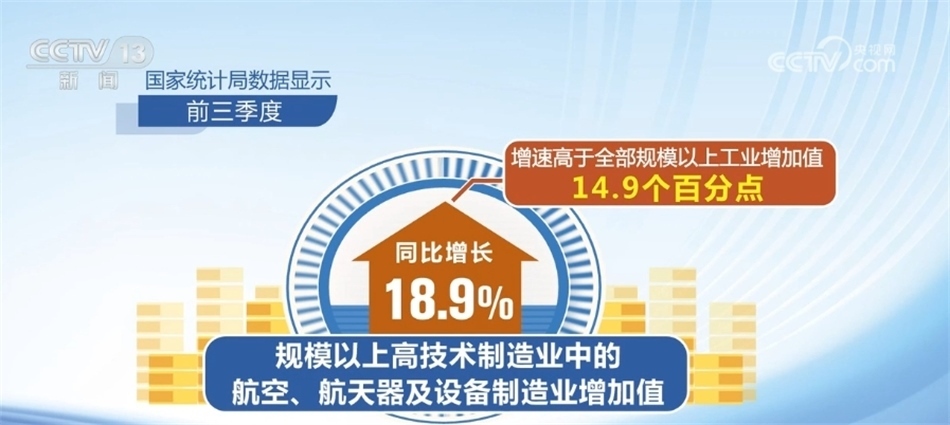 高技術(shù)產(chǎn)業(yè)投資動力強(qiáng)勁,新動能領(lǐng)域保持較快增長。國家統(tǒng)計(jì)局?jǐn)?shù)據(jù)顯示,前三季度,高技術(shù)制造業(yè)投資和高技術(shù)服務(wù)業(yè)投資分別同比增長11.3%和11.8%,分別高于全部固定資產(chǎn)投資增速8.2和8.7個百分點(diǎn),持續(xù)推動產(chǎn)業(yè)轉(zhuǎn)型升級。規(guī)模以上高技術(shù)制造業(yè)中的航空、航天器及設(shè)備制造業(yè)增加值同比增長18.9%,增速高于全部規(guī)模以上工業(yè)增加值14.9個百分點(diǎn)。