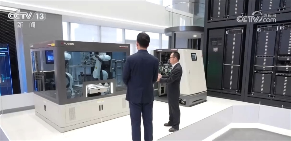 超聚變金融業(yè)務(wù)部產(chǎn)品解決方案經(jīng)理 許世岳:這個是智能運(yùn)維機(jī)器人,它能夠?qū)崿F(xiàn)從服務(wù)器故障檢測 到來回的運(yùn)輸,到服務(wù)器的故障維修全部過程。過去的時候,一個萬臺規(guī)模的數(shù)據(jù)中心大概需要一個五六十人左右的團(tuán)隊(duì)來維護(hù),現(xiàn)在有了它之后,只需要一個五到六人的小團(tuán)隊(duì)。