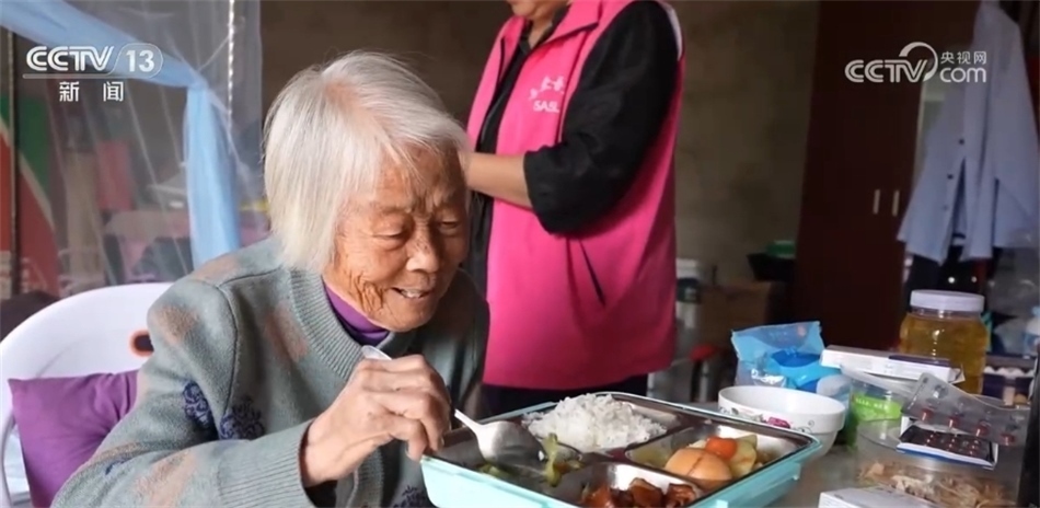 浙江省長興縣建立縣、鄉(xiāng)鎮(zhèn)(街道)、村社三級補(bǔ)貼政策,在縣財(cái)政給予每餐每位老人補(bǔ)貼3元的基礎(chǔ)上,鄉(xiāng)鎮(zhèn)(街道)和社區(qū)另行制定補(bǔ)貼政策,實(shí)現(xiàn)普通老人優(yōu)惠就餐,高齡、低收入、殘疾等老人免費(fèi)就餐。同時,以原有的58家老年食堂、168家老年助餐點(diǎn)為平臺,配備21輛愛心送餐車,為2000多位無法自行前往老年服務(wù)中心就餐的失能、高齡老人提供送餐服務(wù)。86歲的周金玉老人受疾病困擾,行動不便,在送餐員的幫助下,老人足不出戶就能吃上熱乎乎的飯菜。