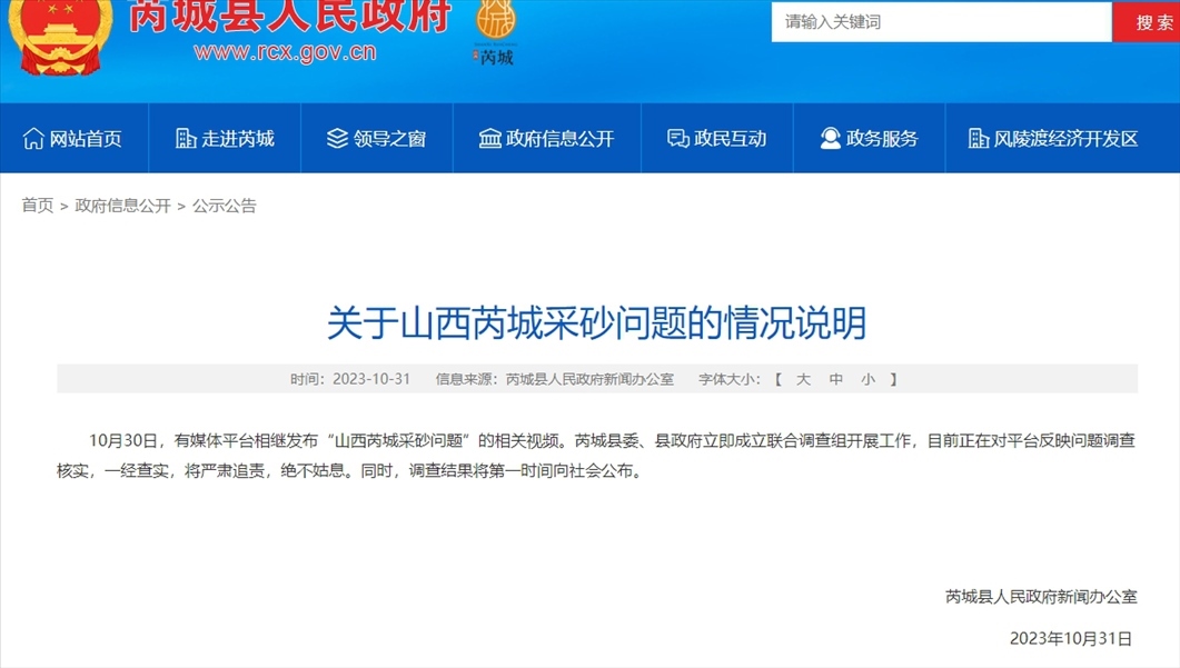 ·網(wǎng)傳砂場(chǎng)采砂致近千畝耕地被毀被占,山西芮城:正在調(diào)查核實(shí)。