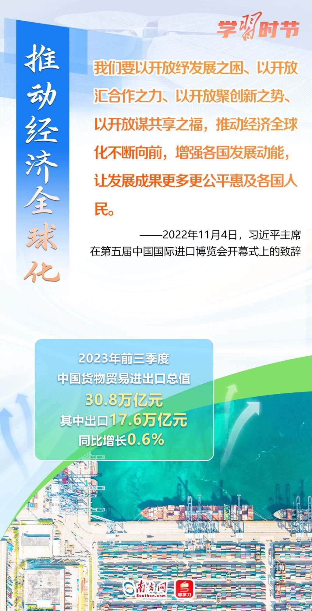 11月5日至10日,第六屆中國國際進(jìn)口博覽會將在上海舉行。這個由習(xí)近平主席親自謀劃、親自部署、親自推動的世界上首個以進(jìn)口為主題的國家級展會,目前已成為舉世矚目的貿(mào)易盛會、開放合作的重要平臺、全球共享的國際公共產(chǎn)品。第六屆進(jìn)博會舉行在即,讓我們通過一組海報(bào),重溫習(xí)近平主席在過去五屆進(jìn)博會上的重要講話,深刻認(rèn)識高水平對外開放的時代意義與關(guān)鍵作用。