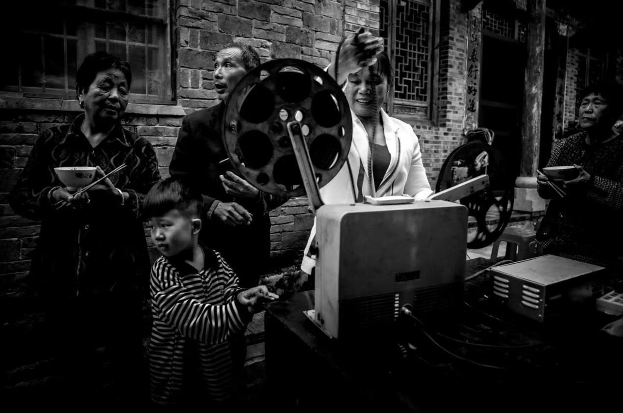 1983年,鄉(xiāng)里成立了電影放映隊(duì),曹毅成了隊(duì)長(zhǎng),還參加了電影培訓(xùn)班,扎扎實(shí)實(shí)地學(xué)了放映技術(shù)、電工等好多課程,成了專(zhuān)業(yè)的放映員。那時(shí)片源少,一張片子各個(gè)鄉(xiāng)排期輪流放映,讓曹毅最開(kāi)心的事,就是坐上幾個(gè)小時(shí)的公交車(chē)去縣里拿膠片。有時(shí)揣著膠片回來(lái)的路上就忍不住想樂(lè),哪回放新電影都像打仗一樣,人山人海,得防著別碰壞了放映機(jī),還得留心會(huì)有哪個(gè)村連夜來(lái)?yè)尫庞硻C(jī)?!翱傆幸蝗f(wàn)人,銀幕前后都是人,背面都有人看。在稻田里面把那稻子割完了以后,電影就在稻場(chǎng)里面放,不然地方不夠大?!笨諝庵酗h著稻谷的香味,不少人會(huì)盤(pán)腿坐在地上,扎扎實(shí)實(shí)看完一部電影。