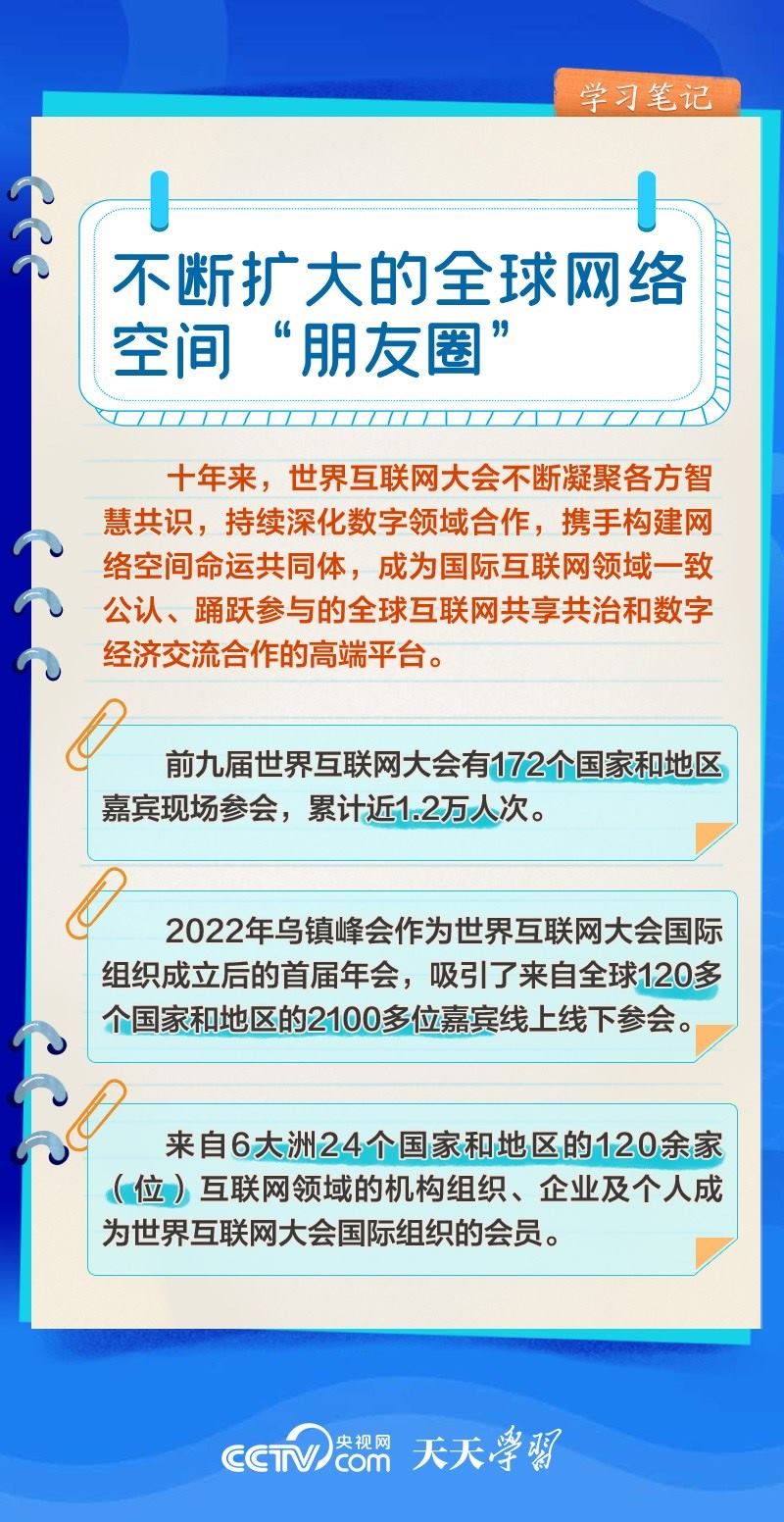 前九屆世界互聯(lián)網(wǎng)大會,習(xí)近平主席或親臨現(xiàn)場發(fā)表主旨演講,或視頻致辭,或向大會發(fā)來賀信,以不同形式關(guān)心大會舉辦。央視網(wǎng)《天天學(xué)習(xí)》欄目推出學(xué)習(xí)筆記,與您一起了解世界互聯(lián)網(wǎng)大會的十年“網(wǎng)”事。