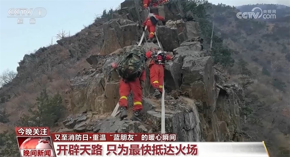 今年四月份,一處起火點在海拔3800多米的峭壁懸崖,為盡快滅火,最快的路線就是要翻越這段坡度超過70度的山脊。山脊寬不足米,左右兩側都是百米深的斷崖。負責開路的消防員只能用手指扣住石縫,雙腳登著石頭,把臉和軀干緊貼山體向上攀爬。在危險重重的絕壁上硬生生地開辟出了一條救援天路。二百多名消防員夜以繼日,在高海拔缺氧的環(huán)境下,每天背著將近40斤重的滅火機具往返于這條天路之上,奔赴火場。整整十個晝夜的撲救,山火終于被撲滅。