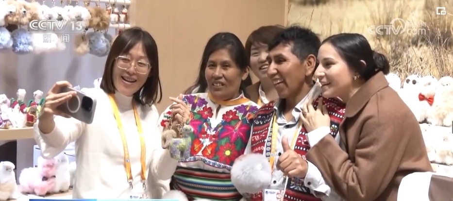同樣是第一次到中國(guó)的,還有來(lái)自秘魯?shù)鸟R馬尼大叔。這其實(shí)已經(jīng)是他親手制作的羊駝第6次亮相進(jìn)博會(huì)。但是過(guò)去5年,他一直沒(méi)有機(jī)會(huì)親自來(lái)到現(xiàn)場(chǎng)。展臺(tái)上的小羊駝們這些年成了進(jìn)博會(huì)上的暢銷單品,也幫助遠(yuǎn)在秘魯?shù)?00多個(gè)家庭脫貧致富。來(lái)現(xiàn)場(chǎng)看看,成了馬馬尼大叔一直以來(lái)的愿望。