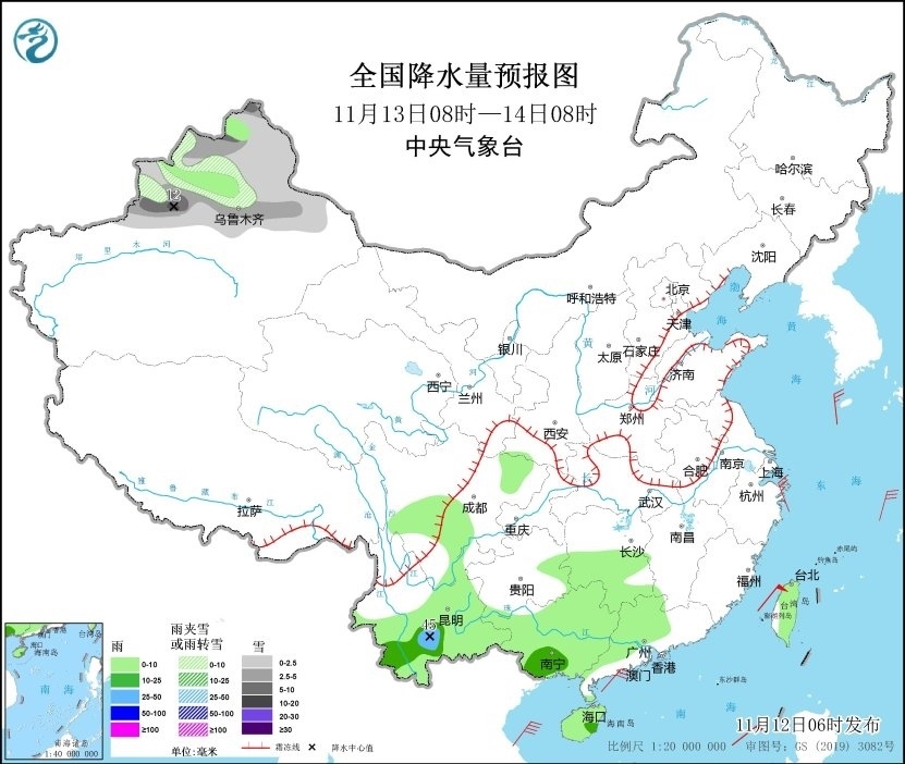 雨雪方面,預(yù)計未來三天,全國大部地區(qū)降水較弱,西南地區(qū)東部、江漢、江南、華南等地有陰雨天氣,整體以小雨為主,有分散的中雨或大雨,局地暴雨。另外,13日,新疆北部和沿天山地區(qū)的部分地區(qū)將有小到中雪或雨夾雪,局地有大到暴雪。