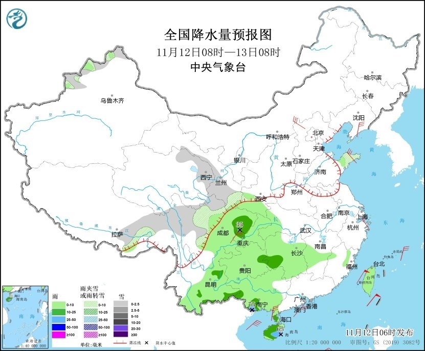 預(yù)計12日至13日,江淮南部、西南地區(qū)東部、江南中東部、華南及青藏高原中東部等地最低氣溫或日平均氣溫累計降溫4~8℃,其中廣西南部、青藏高原中東部等地氣溫將下降8~10℃、局地10~12℃。此次過程最低氣溫將出現(xiàn)在13日至14日早晨,最低氣溫0℃線位于黃淮南部至江淮北部一線,江漢、江淮南部、江南北部、貴州北部和東部等地最低氣溫將降至2~4℃。