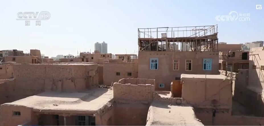 總臺央視記者 張春玲:這里是喀什的高臺民居。據(jù)考證,從漢代開始,就已經(jīng)有人在這里聚居了。隨著人口等因素的增長,我們可以看到這兒的房子是越蓋越高,逐漸發(fā)展成了獨特的建筑風貌。通過創(chuàng)造性的保護,我們現(xiàn)在可以在這樣一個高臺上,近距離地感受民居的風貌 ,同時還可以深入到當?shù)鼐S吾爾族人民的文化和生活當中。