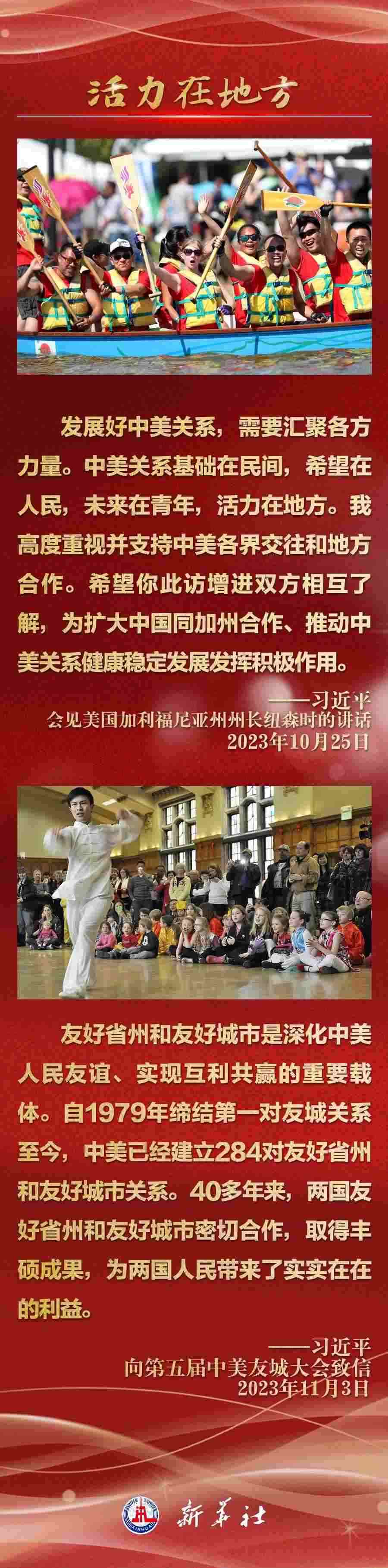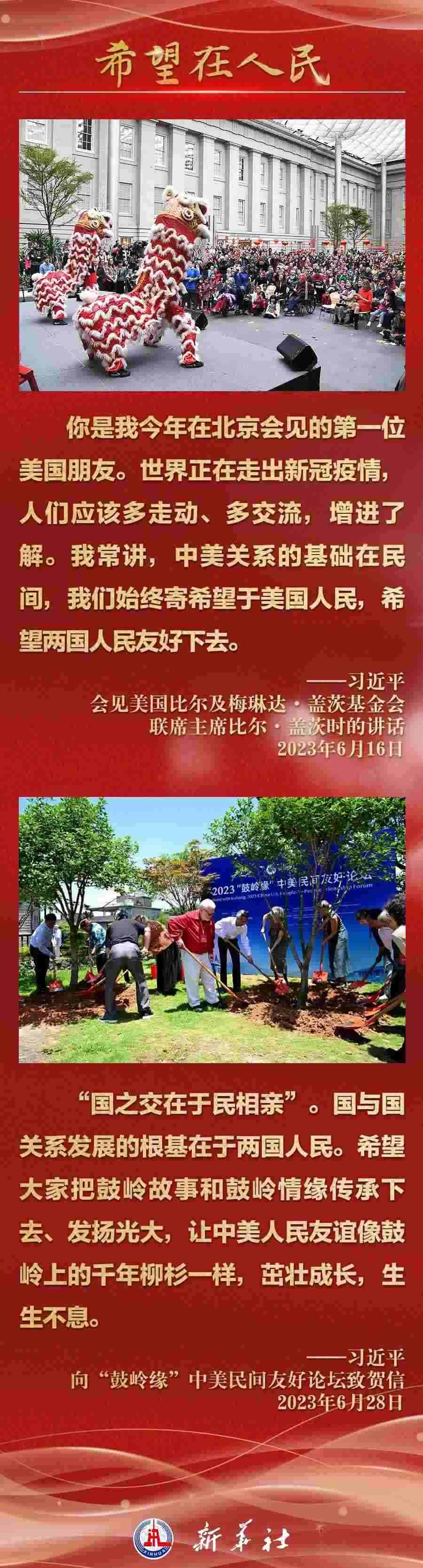 今年以來(lái),從在京會(huì)見(jiàn)美國(guó)各界人士,到向“鼓嶺緣”中美民間友好論壇等活動(dòng)致賀信,再到復(fù)信美國(guó)華盛頓州“美中青少年學(xué)生交流協(xié)會(huì)”、史迪威將軍后人、飛虎隊(duì)老兵等友好人士,習(xí)近平主席同美國(guó)各界真摯互動(dòng),強(qiáng)調(diào)中美關(guān)系基礎(chǔ)在民間,希望在人民,未來(lái)在青年,活力在地方。