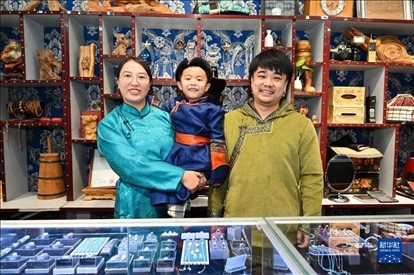 1994年出生于內(nèi)蒙古烏拉特前旗的齊天賜,天生患有肢體殘疾。雖然命運(yùn)坎坷,但他不屈不撓。為了學(xué)習(xí)蒙古族傳統(tǒng)手工銀飾技藝,他先后跟隨多名非遺傳承人學(xué)習(xí)熔銀、鍛打、焊接、清洗等銀飾加工工藝。2018年,他和愛(ài)人蘇曉霞開設(shè)公司,并同時(shí)經(jīng)營(yíng)線上店面。這些年來(lái),齊天賜在發(fā)展事業(yè)的同時(shí)還積極教授徒弟,在累計(jì)教授的四十余人中有十幾名殘疾人學(xué)徒,并有多名學(xué)徒開店創(chuàng)業(yè)。