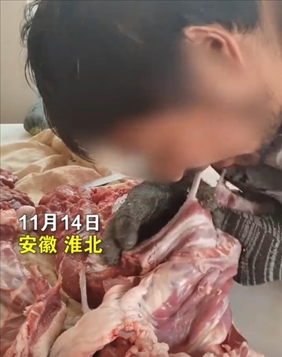 ·網(wǎng)曝安徽淮北一家肉店員工用嘴剔肉,店主稱是幾十年老手藝,當(dāng)?shù)厥斜O(jiān)局:系搞噱頭擺拍。