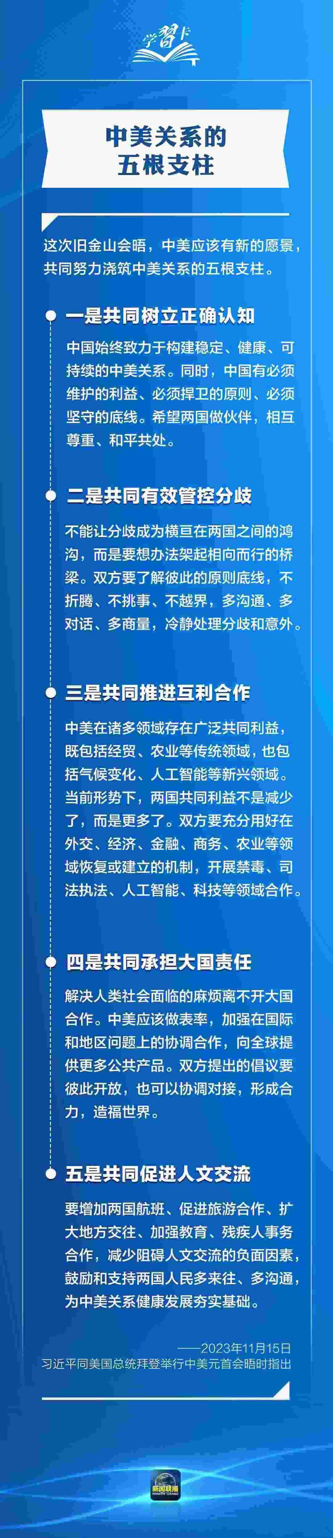 習(xí)近平多次指出,作為兩個世界大國,中美能否確立正確相處之道,攸關(guān)世界和平發(fā)展和人類前途命運(yùn)。發(fā)展中美關(guān)系,習(xí)主席強(qiáng)調(diào)三點(diǎn)原則、四個方面、五根支柱,一起學(xué)習(xí)→