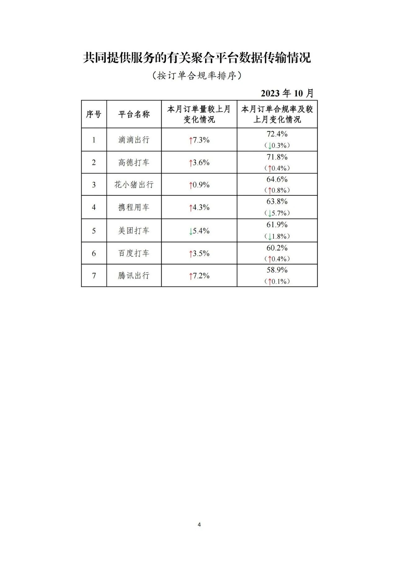 其中,面向乘客、與網(wǎng)約車平臺公司共同提供服務的平臺(俗稱“聚合平臺”)完成2.23億單,環(huán)比上升3.6%。按訂單合規(guī)率由高到低的分別是滴滴出行、高德打車、花小豬出行、攜程用車、美團打車、百度打車、騰訊出行。