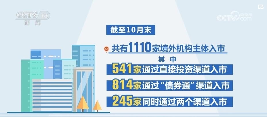 央行上海總部數(shù)據(jù)顯示,在資金凈流入的同時,銀行間債券市場的境外機構(gòu)參與數(shù)量也在不斷增加,截至10月末,共有1110家境外機構(gòu)主體入市。其中,541家通過直接投資渠道入市,814家通過“債券通”渠道入市,245家同時通過兩個渠道入市。近年來,我國銀行間債券市場對外開放力度不斷加大,吸引了更多境外投資者。