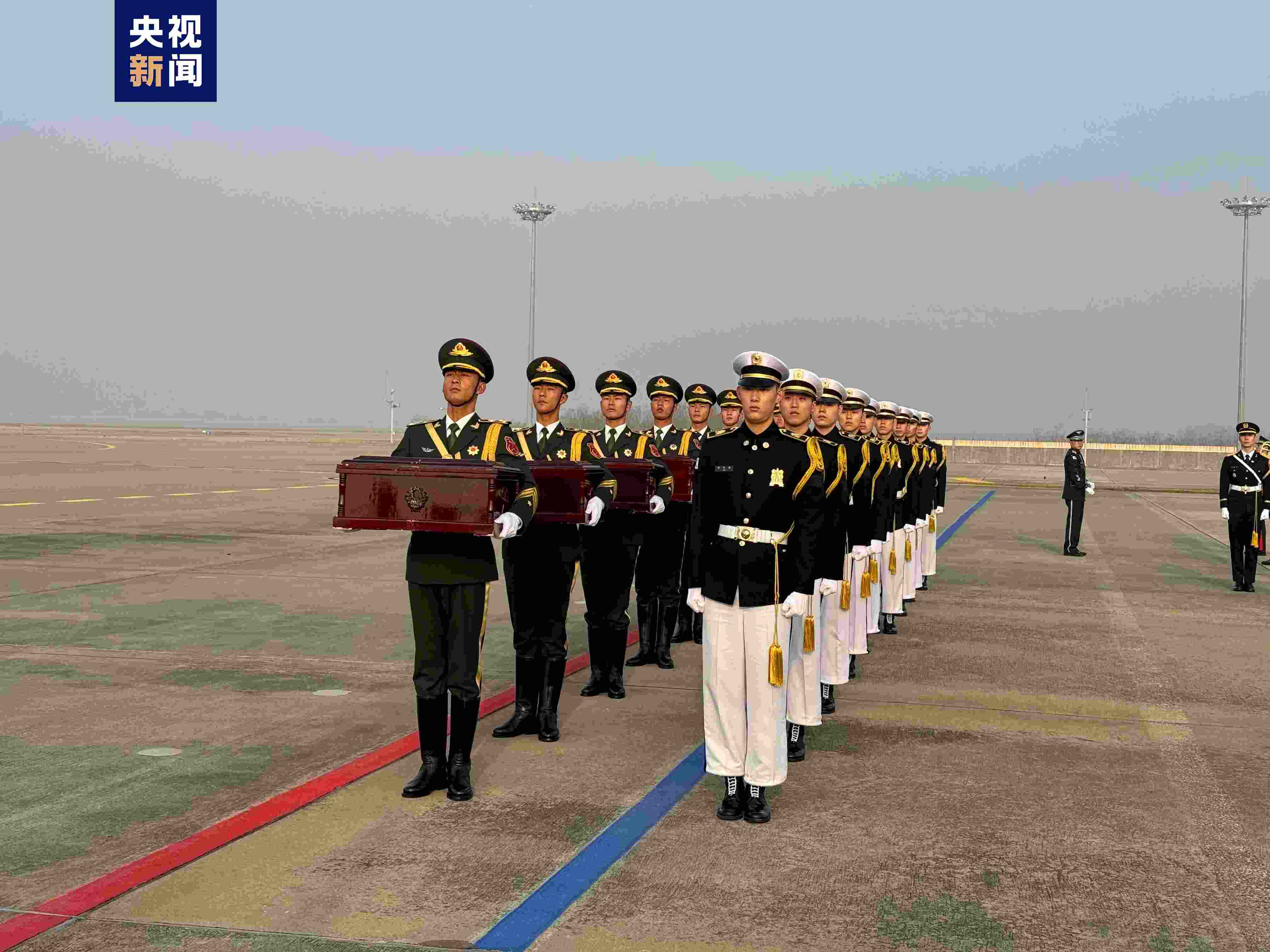 當(dāng)?shù)貢r間23日上午,中韓雙方在韓國仁川國際機場舉行第十批在韓中國人民志愿軍烈士遺骸及遺物交接儀式。此次韓方共向中方移交25名中國人民志愿軍烈士遺骸及335件遺物,交接儀式后烈士遺骸將搭乘中國空軍運-20專機返回祖國。