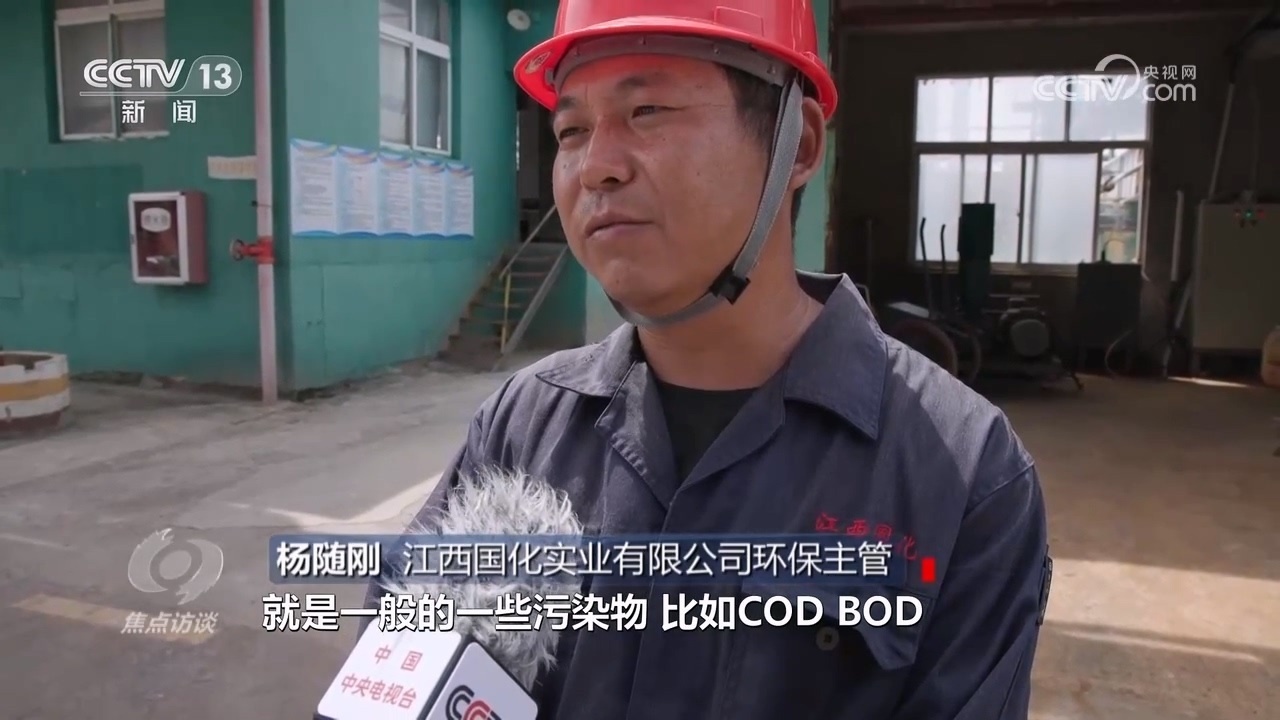 江西國化實業(yè)有限公司環(huán)保主管楊隨剛:“目前檢測就是一般的一些污染物,比如COD、BOD,還有pH有沒有影響,氨氮和總磷這些因子?!?/p>
