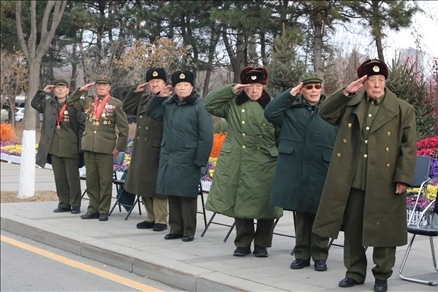 志愿軍老戰(zhàn)士向戰(zhàn)友敬禮。圖源自東北新聞網(wǎng)
