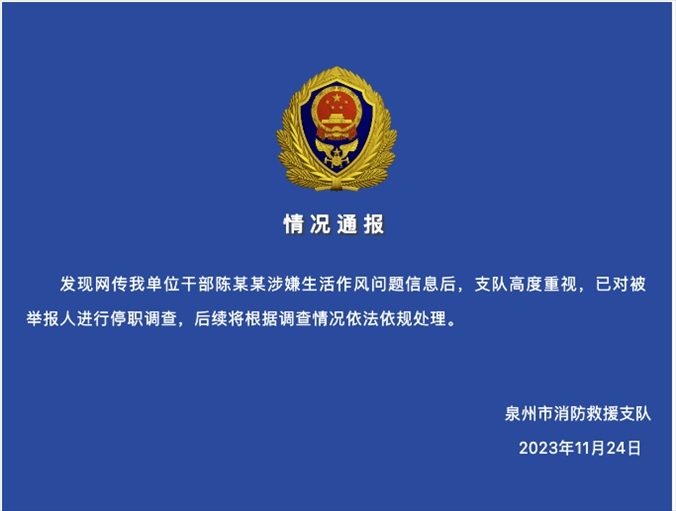 ·官方通報消防科長被舉報婚內(nèi)出軌:已停職調(diào)查。