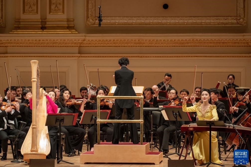 11月24日,來(lái)自中央音樂(lè)學(xué)院交響樂(lè)團(tuán)的藝術(shù)家在美國(guó)紐約卡內(nèi)基音樂(lè)廳進(jìn)行演出。新華社發(fā)(邁克爾·維奧拉果攝)