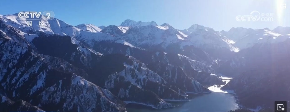初冬季節(jié),新疆阜康天山天池景區(qū)銀裝素裹。湛藍(lán)的天空下,雪山與雪嶺云杉交相呼應(yīng),波光粼粼的湖面映照著皚皚白雪,游客們宛如置身冰雪世界。