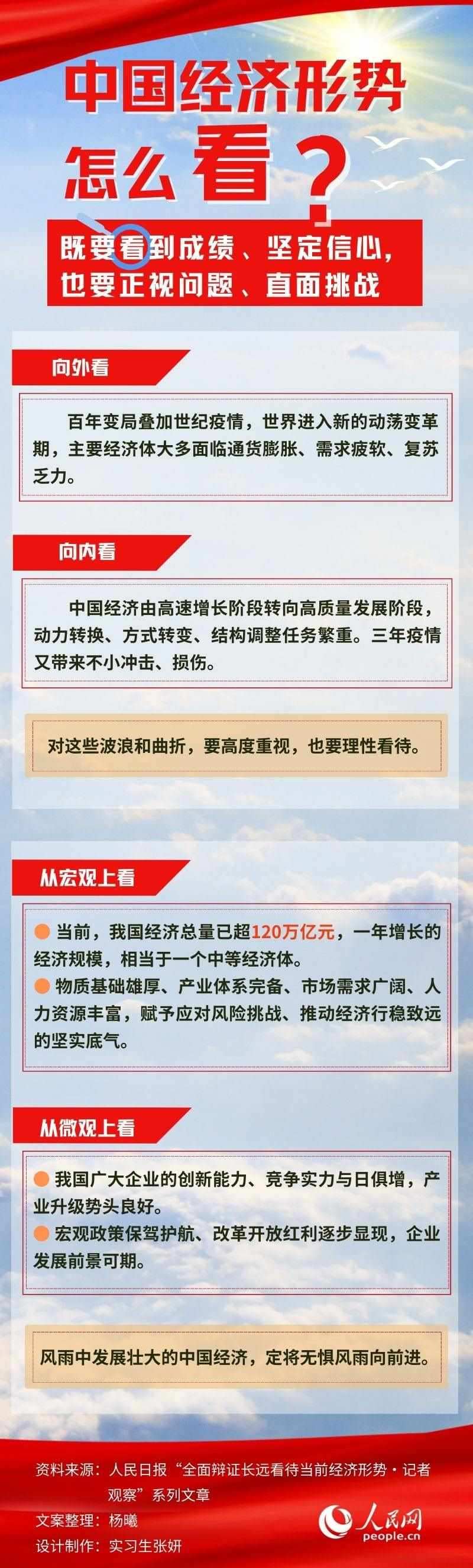 今年以來(lái),我國(guó)經(jīng)濟(jì)總體回升向好,高質(zhì)量發(fā)展扎實(shí)推進(jìn)。讀懂中國(guó)經(jīng)濟(jì),要看到成績(jī)、堅(jiān)定信心,也要正視問(wèn)題、直面挑戰(zhàn)。只有全面辯證長(zhǎng)遠(yuǎn)看待,才能準(zhǔn)確把握經(jīng)濟(jì)發(fā)展中的積極因素,形成推動(dòng)高質(zhì)量發(fā)展的強(qiáng)大動(dòng)力。身處百年未有之大變局,把握優(yōu)勢(shì)、堅(jiān)定前行信心,定能推動(dòng)我國(guó)經(jīng)濟(jì)乘風(fēng)破浪向前、邁上更高臺(tái)階。