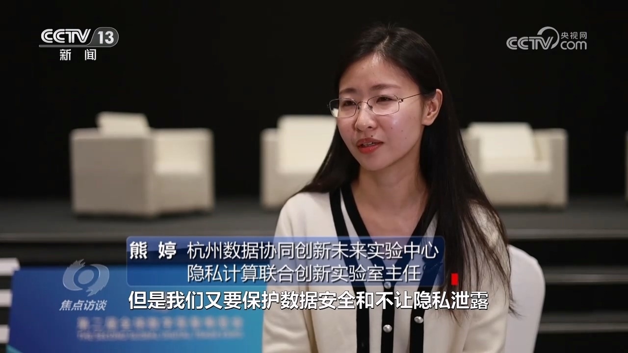 杭州數(shù)據(jù)協(xié)同創(chuàng)新未來實驗中心隱私計算聯(lián)合創(chuàng)新實驗室主任熊婷:“我們要加速數(shù)據(jù)要素快速的價值釋放,但是又要保護數(shù)據(jù)安全,不讓隱私泄露,現(xiàn)在天然就存在著一定的互相制約,我們怎么解決這個問題?隱私計算實際上是用密碼學、各種技術讓數(shù)據(jù)不拿出去,但是又能使用到數(shù)據(jù)的價值。要用各種技術手段、前沿技術保護自己的數(shù)據(jù),安全合規(guī)的使用數(shù)據(jù)?!?/p>