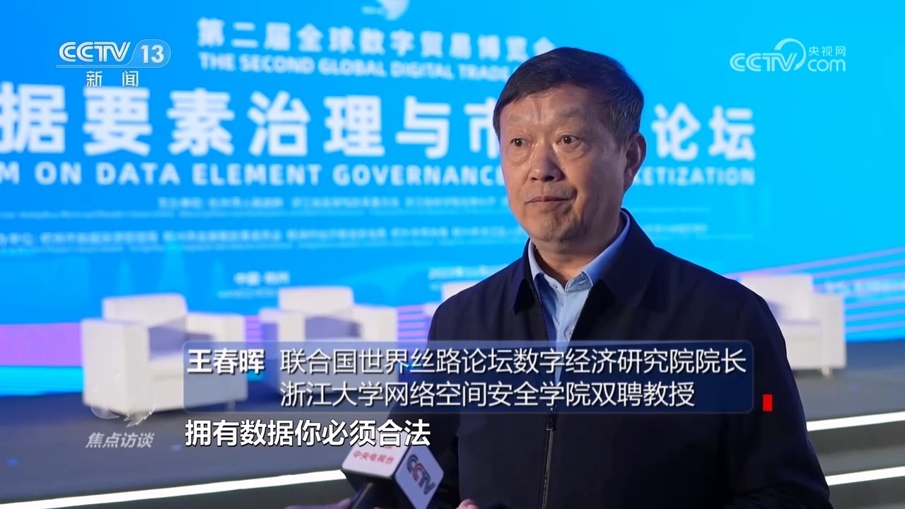 聯(lián)合國世界絲路論壇數(shù)字經(jīng)濟研究院院長、浙江大學網(wǎng)絡空間安全學院雙聘教授王春暉:“一個是法律層面的清晰,一個是經(jīng)濟方面的清晰,就是擁有數(shù)據(jù)必須合法,不能違法擁有數(shù)據(jù),擁有數(shù)據(jù)合法的情況下,可以加工利用,發(fā)揮對數(shù)據(jù)的整個價值的利用?!?/p>
