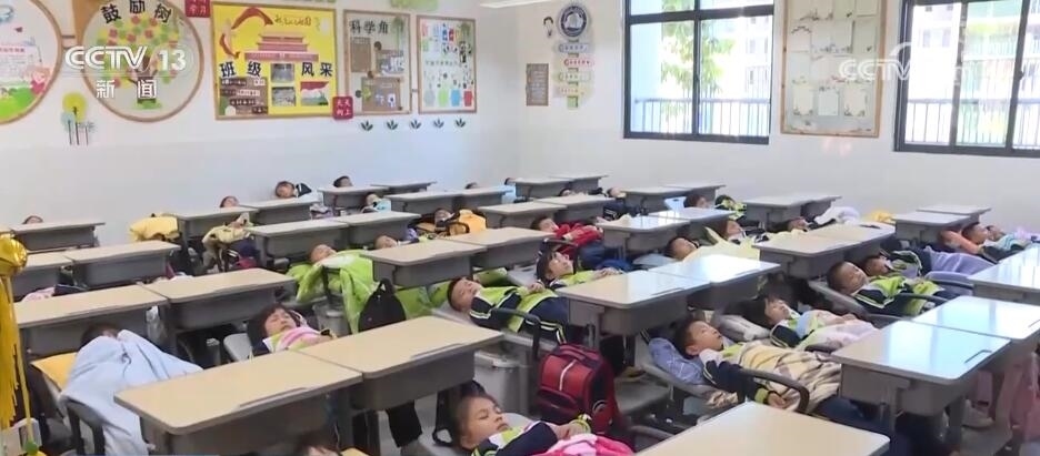 一些鄉(xiāng)村學(xué)校也結(jié)合實(shí)際情況,努力打造午休條件。在湖南株洲這所小學(xué),每個(gè)學(xué)生都擁有一張可以躺著午休的折疊小床,每天中午能保證至少40分鐘的躺睡時(shí)間。
