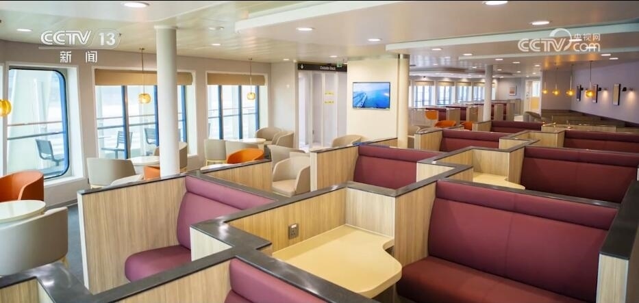 不僅操作靈巧、動力強(qiáng)勁,船上還為旅客提供了游戲區(qū)、兒童區(qū)、餐飲區(qū)等超過1萬平方米的公共活動區(qū)域。通過建立完整的產(chǎn)業(yè)鏈,內(nèi)裝方面已實(shí)現(xiàn)了從設(shè)計(jì)、制造、安裝全過程100%國產(chǎn)化。