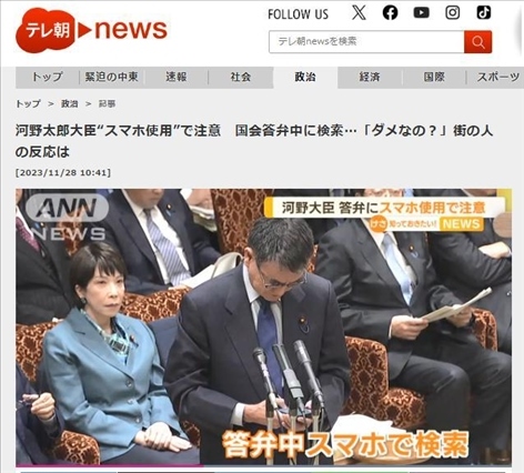 ·據(jù)日媒報(bào)道,27日,日本參議院預(yù)算委員會(huì)公開答辯中,數(shù)字大臣河野太郎在回答問題時(shí),拿出手機(jī)試圖查詢資料,被委員長(zhǎng)叫停。
