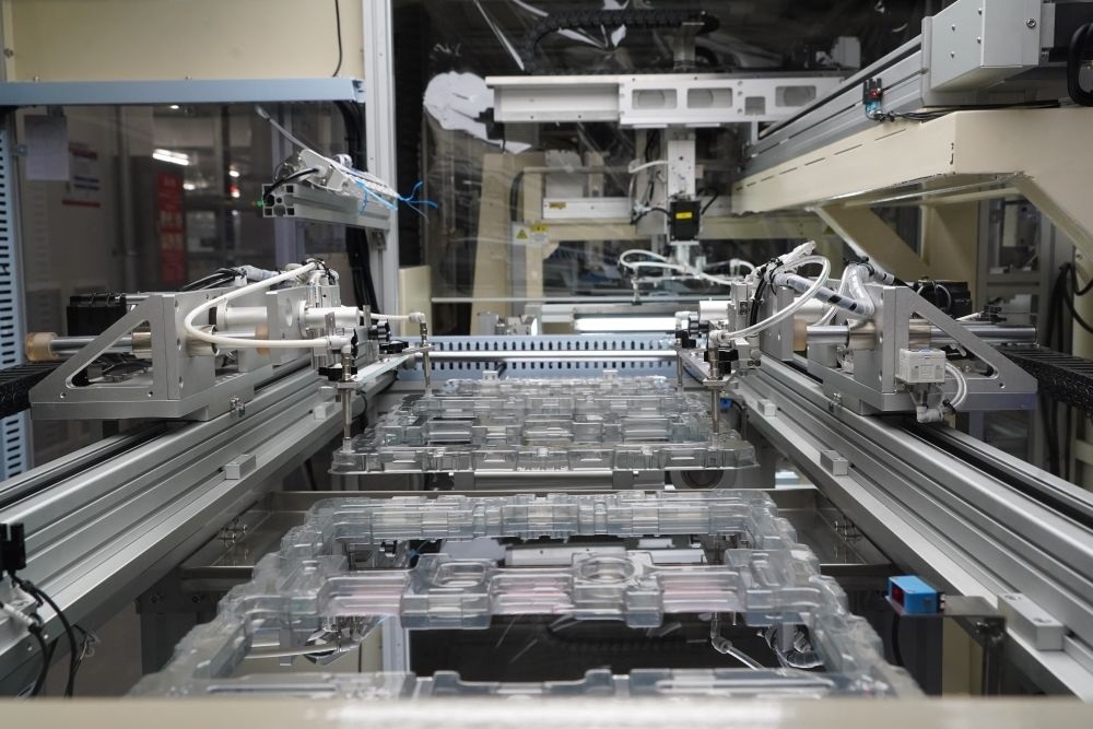在成都高新區(qū)京東方成都車載顯示基地拍攝的顯示屏自動化生產線(2023年9月8日攝)。新華社記者 唐文豪 攝