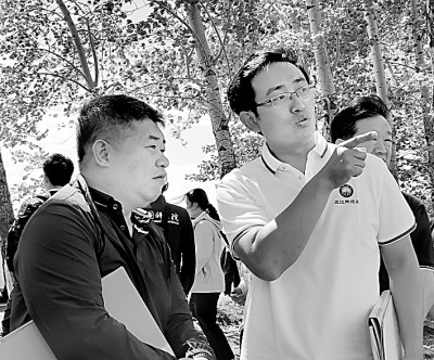 劉煥軍(右二)組織專家在三江示范區(qū)實地考察。資料圖片
