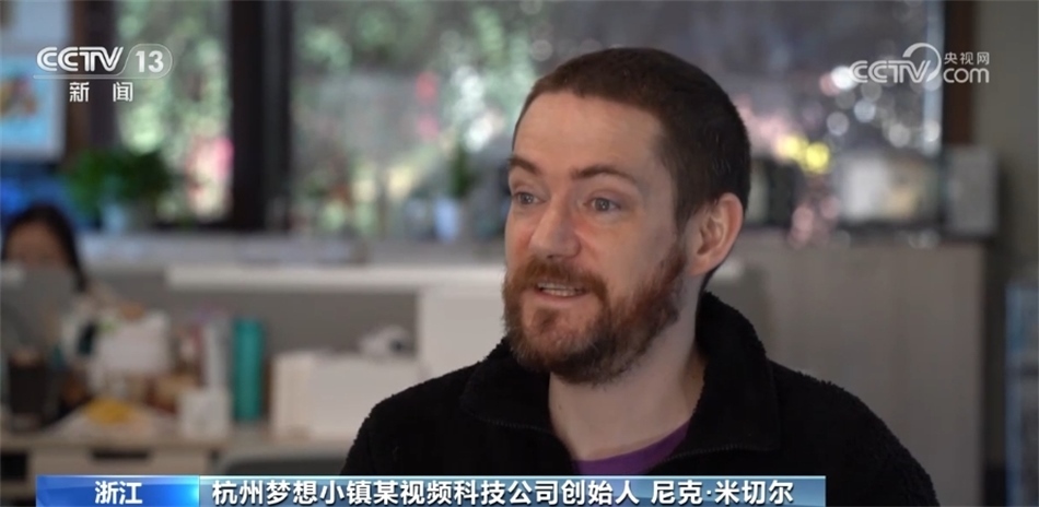 杭州夢想小鎮(zhèn)某視頻科技公司創(chuàng)始人 尼克·米切爾:在中國把那么有趣的文化通過VR拍出來,分享給全世界的人,然后將海外的(傳統(tǒng)文化)也分享給中國,同時我們在找一些新的機(jī)會,把這些人融合(交流)在一起。