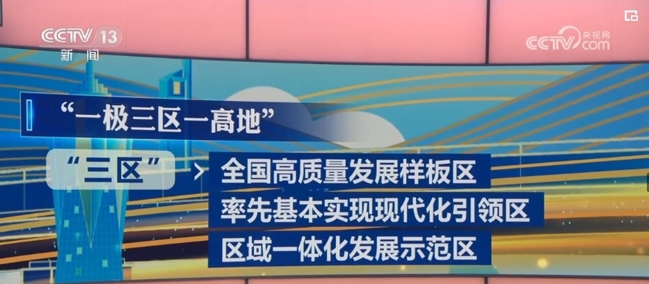 其中,“一極”就是全國發(fā)展強(qiáng)勁活躍增長極,“三區(qū)”指的是全國高質(zhì)量發(fā)展樣板區(qū)、率先基本實(shí)現(xiàn)現(xiàn)代化引領(lǐng)區(qū)、區(qū)域一體化發(fā)展示范區(qū),而“一高地”則是指新時代改革開放新高地。
