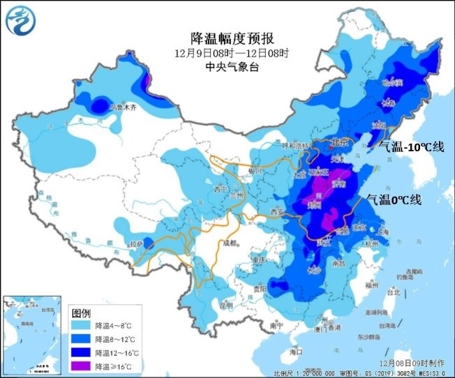 大風(fēng)降溫預(yù)報(bào):預(yù)計(jì)9日至11日,受較強(qiáng)冷空氣影響,東北地區(qū)、華北、黃淮、江漢、江淮、江南西部和北部等地氣溫下降6~10℃,東北地區(qū)中部、華北南部、黃淮等地降溫幅度可達(dá)12℃以上;12日早晨,最低氣溫0℃線將南壓到湖北中部至蘇皖北部一帶。期間,長(zhǎng)江以北大部地區(qū)有4~6級(jí)偏北風(fēng),陣風(fēng)7~8級(jí);渤海、黃海、東海海域有5~7級(jí)風(fēng)、陣風(fēng)8~9級(jí)。