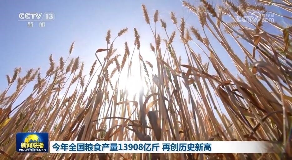 央視網(wǎng)消息(新聞聯(lián)播):國家統(tǒng)計(jì)局今天(12月11日)發(fā)布全年糧食產(chǎn)量數(shù)據(jù),2023年全國糧食總產(chǎn)量達(dá)13908.2億斤,再創(chuàng)歷史新高,連續(xù)9年穩(wěn)定在1.3萬億斤以上。