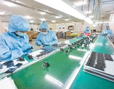 龍江工業(yè)園內(nèi),方正電機(越南)有限責(zé)任公司車間里的當(dāng)?shù)貑T工正在工作。黎國忠攝