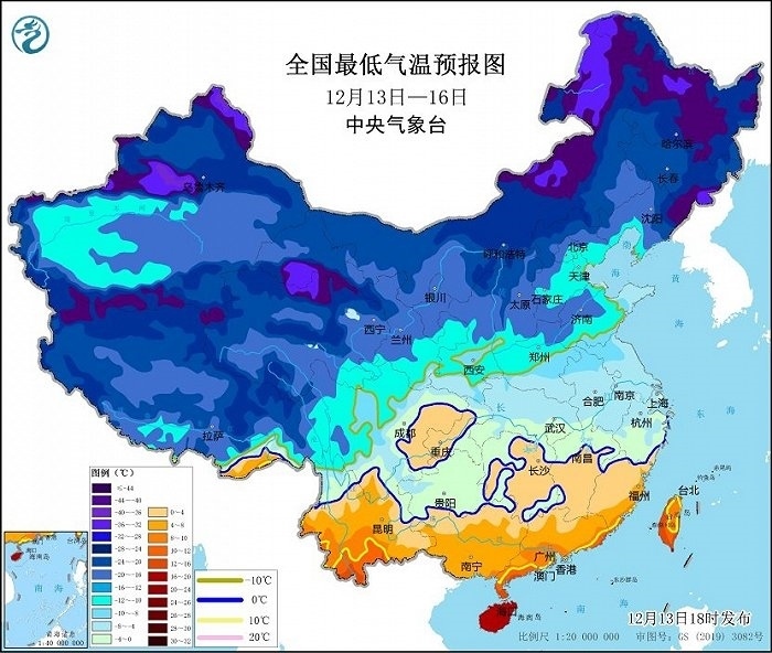 預(yù)計,12月13日夜間至16日,一股強(qiáng)寒潮將自新疆開始,自西向東、自北向南影響我國,大部地區(qū)將先后出現(xiàn)4~6級偏北風(fēng),氣溫隨之下降8~12℃,西北地區(qū)、內(nèi)蒙古中西部、華北西部和南部、黃淮北部及江淮東部、江南、華南大部、貴州等地的部分地區(qū)降溫可達(dá)14℃以上。新疆山口地區(qū)有9~10級、陣風(fēng)12~13級大風(fēng),東部和南部海區(qū)有6~8級、陣風(fēng)9~10級大風(fēng)。17日早晨最低氣溫0℃線可南壓至貴州南部和江南北部一帶,-10℃線位于黃淮北部至秦嶺一帶。華北、黃淮北部等地的部分地區(qū)最低氣溫將接近或跌破歷史同期極值。