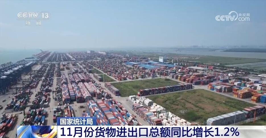 貨物進(jìn)出口同比增長(zhǎng),貿(mào)易結(jié)構(gòu)繼續(xù)優(yōu)化,11月份,貨物進(jìn)出口總額同比增長(zhǎng)1.2%,比上月加快0.3個(gè)百分點(diǎn)。