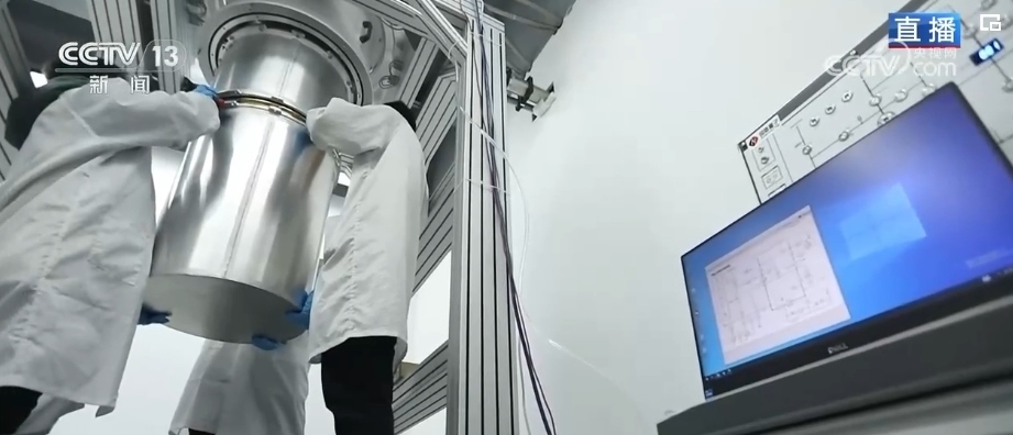 完成復(fù)雜的運(yùn)算僅靠主板是不夠的。量子芯片相當(dāng)于傳統(tǒng)計(jì)算機(jī)的CPU,也就是“大腦”,但是想讓芯片正常工作,所需要的環(huán)境是非??量痰摹T诂F(xiàn)場,工作人員正在調(diào)試的就是給這塊芯片提供理想工作環(huán)境的低溫低噪運(yùn)行裝置,芯片就是在這個(gè)白色圓桶狀主體內(nèi)工作,圓筒里會(huì)形成接近“絕對零度”,也就是約在零下273.15℃的環(huán)境,并且還要與外界屏蔽隔離。除了低溫、低噪之外,這套系統(tǒng)上還安裝了很多減震設(shè)備,也是最大程度避免外界環(huán)境影響到芯片的運(yùn)行。