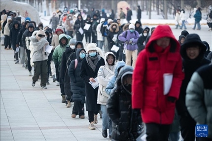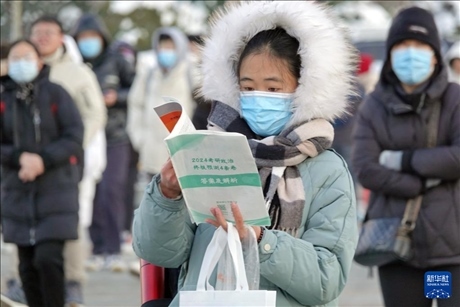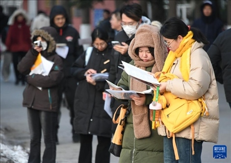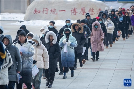 12月23日,在黑龍江省哈爾濱市,考生在哈爾濱理工大學(xué)考點排隊進入考場。