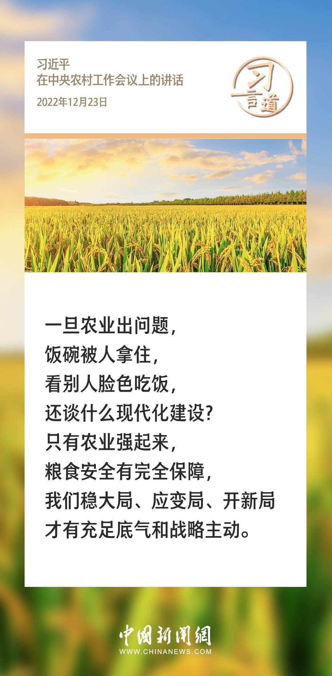 農(nóng)為邦本,本固邦寧。習(xí)近平總書記多次在不同場(chǎng)合就“三農(nóng)”工作發(fā)表重要講話、作出重要部署,始終堅(jiān)持把解決好“三農(nóng)”問題作為全黨工作的重中之重。
